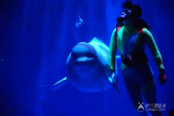 除了可以看到北极熊、企鹅、鳐鱼等极地动物与海洋鱼类,还可欣赏全球独一无二的白鲸表演“海洋之心”,看两头白鲸明星“米拉”和“尼克拉”与美女驯养师默契配合组成心形图案、上演浪漫唯美的故事。